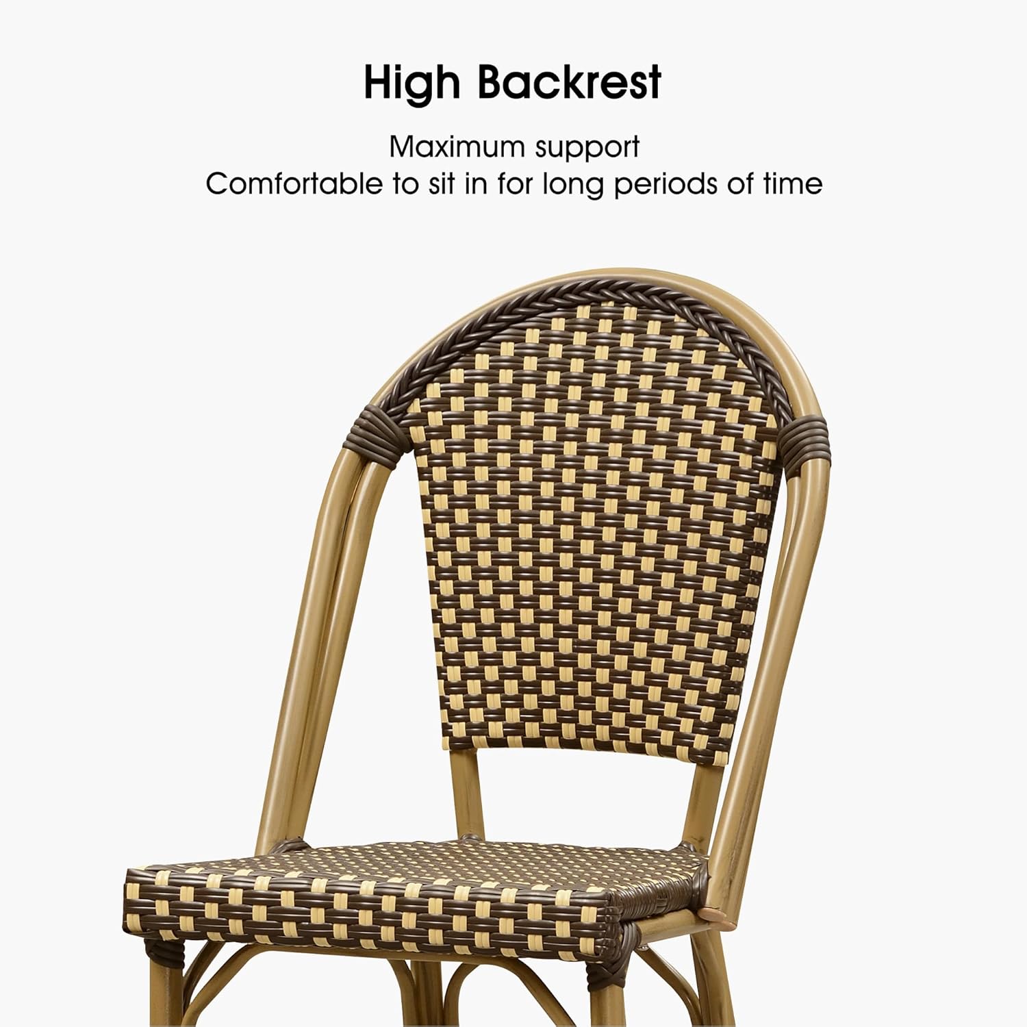 PURPLE LEAF French Bar Stool Set of 2 Bamboo Print Finish Patio Bar Stools with Back Rattan Chairs Wicker Bar Height Stool 30" with Footrest Kitchen Island Stools Outdoor Barstool Brown