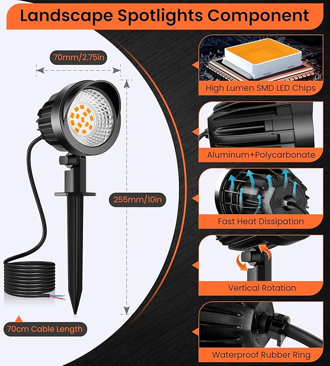- Low Voltage, High Safety: Designed to work with DC/AC 12-24V systems, these landscape lights are compatible with most low-voltage landscape lighting setups. (Please note: A transformer and low-voltage wires are required but not included.)