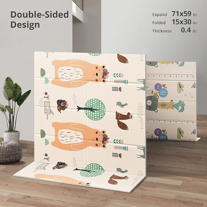 UANLAUO Foldable Baby Play Mat, Extra Large Waterproof Activity Playmats for Babies,Toddlers, Infants, Play & Tummy Time, Foam Baby Mat for Floor with Travel Bag (Bear(71x59x0.4inch))