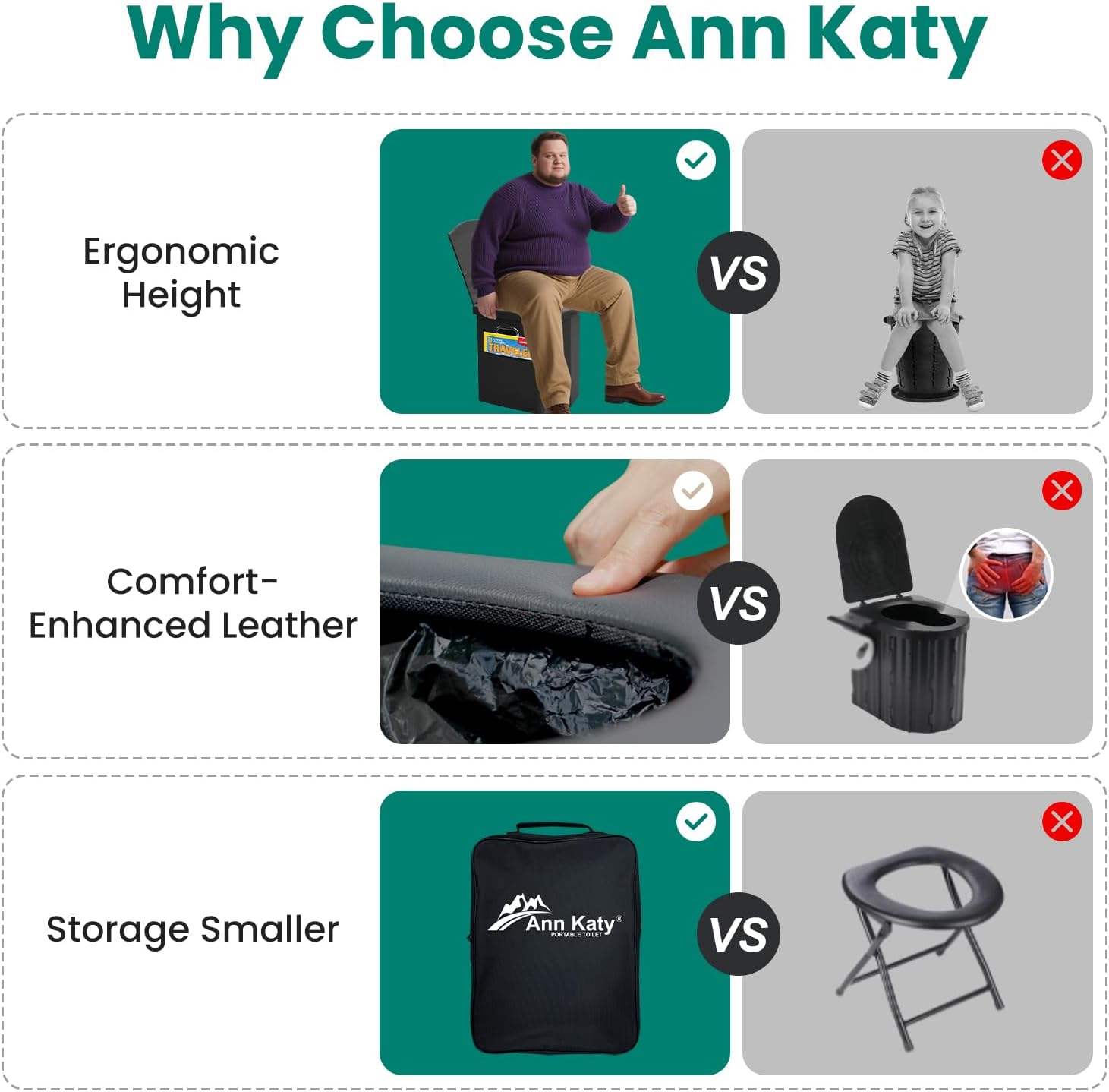 - 【Ergonomic Design】The upgraded Ann Katy toilet has a height of 15.7 inches, a size we developed after extensive research and professional approval. This height helps fully relax the muscle, allowing the colon to empty quickly and completely. It’s also the perfect camping toilet on the market with the right height!