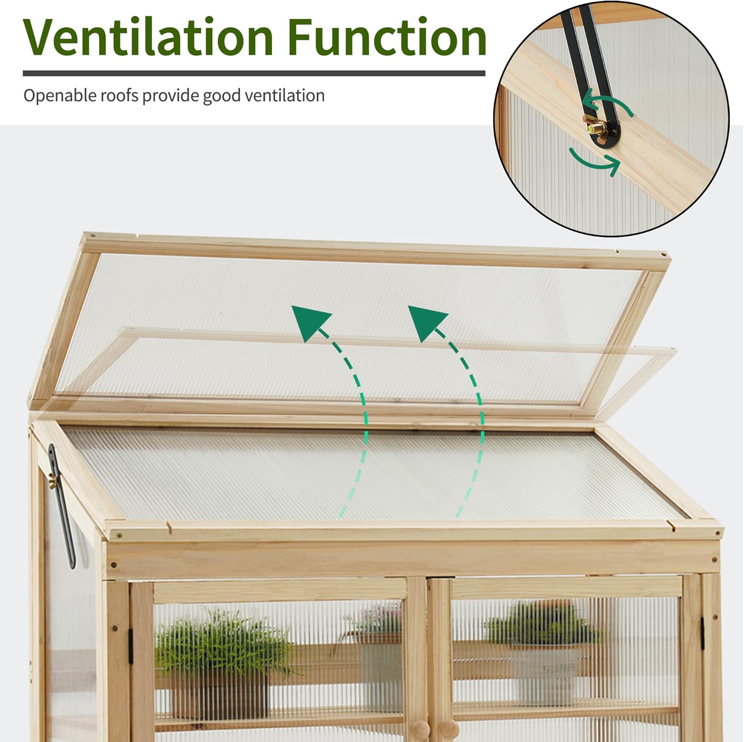 - Fir Wood: The wooden greenhouse is crafted from pure fir wood, with a polished exterior that showcases a rustic style