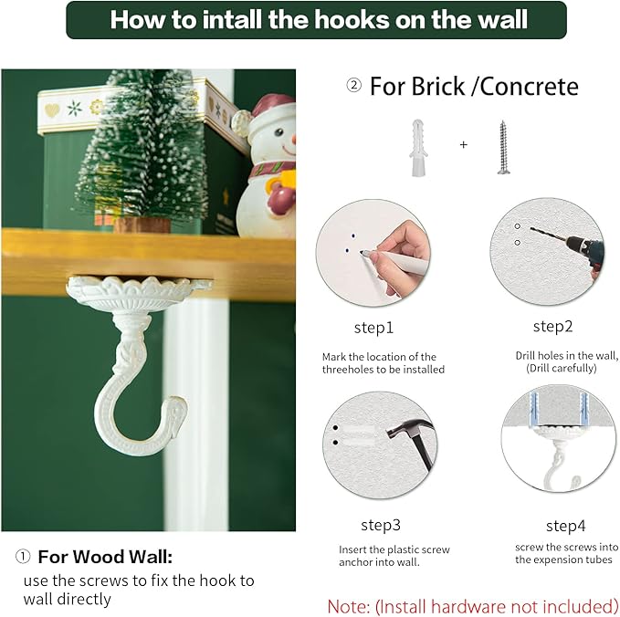 - Easy to install. Package Include: 2pc hooks. Size: 9*9*10cm / 3.5*3.5*3.9inch.