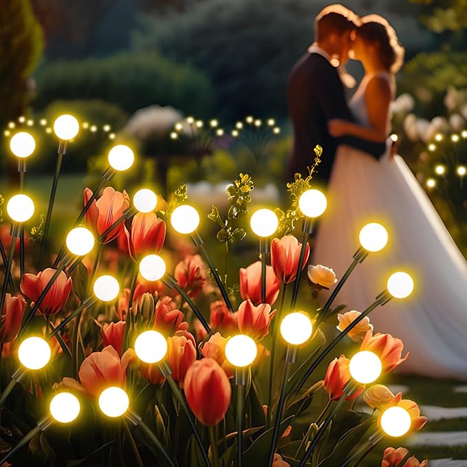 - 【PERFECT GARDEN DECORATION】Solar lights outdoor waterproof make your home and garden sparkle every night. Solar powered firefly lights add sparkle to your yard. Create a romantic and festive atmosphere, it is the perfect outdoor decoration for patios, yards, lawns and sidewalks, as well as any occasion for Halloween, Christmas, Wedding, New Years, parties and more.