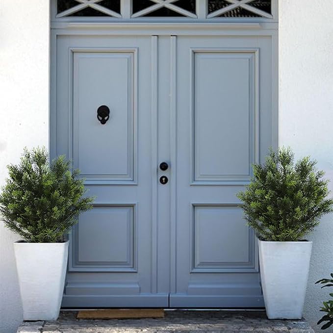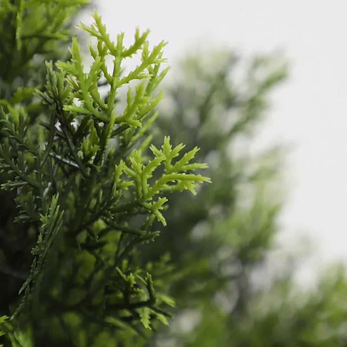 - Realistic Looking:This artificial cedar plant is covered with lifelike cypress crafted from plastic. which make you get close to nature. And it doesn't have weird plastic smell