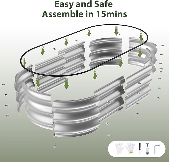 - Thickened Safety Edge: Oval designed metal raised garden beds outdoor with no sharp corners and there is a rubber edge to protect the you and your family from scratches