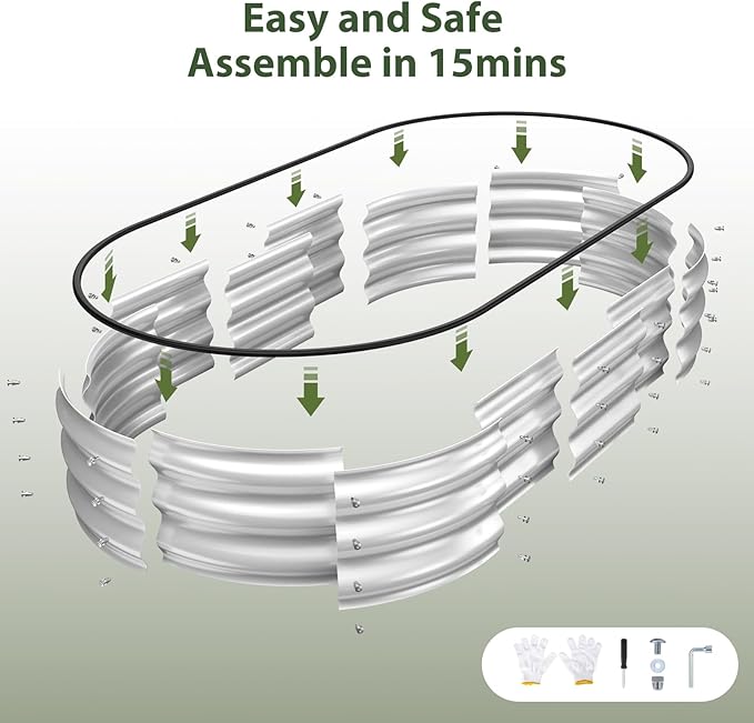 - Oval Designed & Galvanized Material: Raised garden beds outdoor is made of double-layer galvanized metal sheet with anti-rust coating to avoid rusting. The nuts and bolts are also galvanized. Elegant oval design with firm structure and no sharp corners