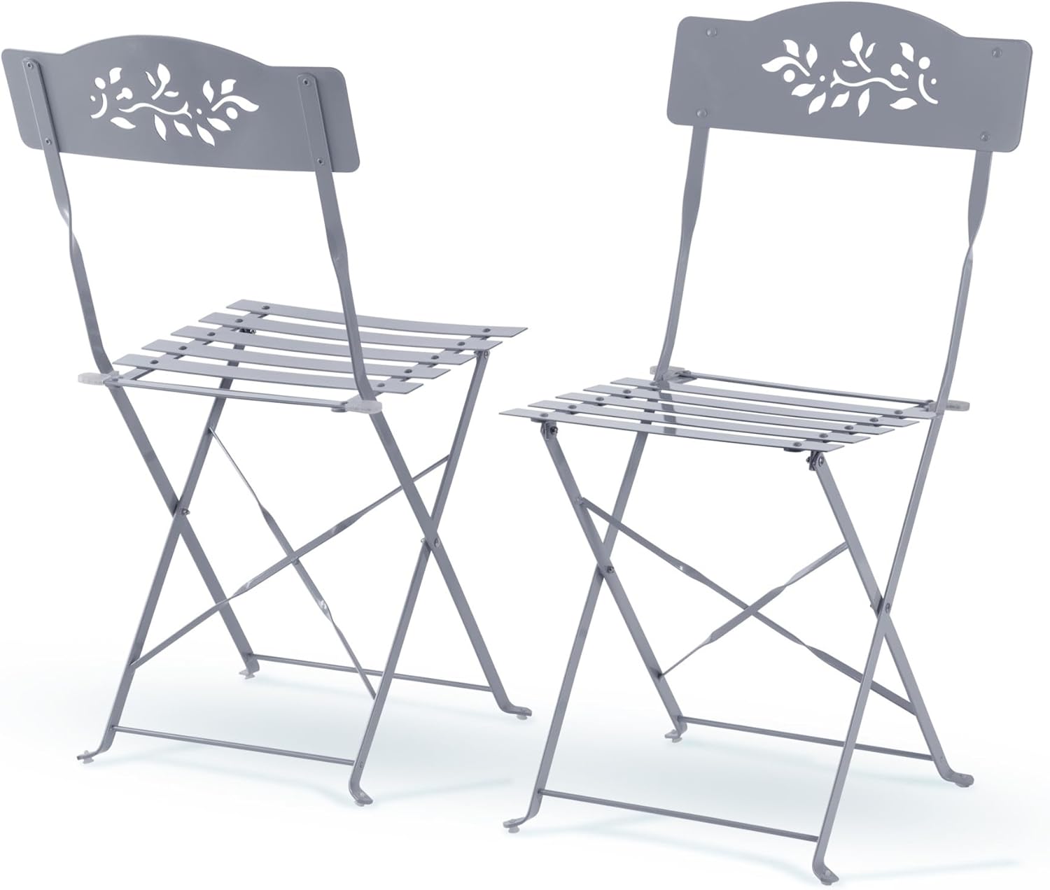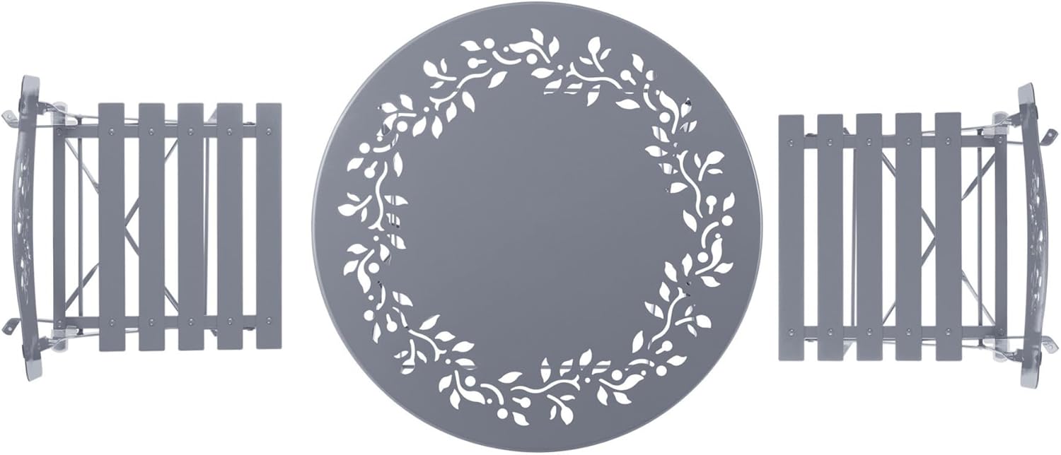 - PATIO SEATING SET: Sophisticated, steel 3 piece bistro set features an intricate laser cut leaf design in a classic neutral shade to complement your indoor or outdoor living space or patio