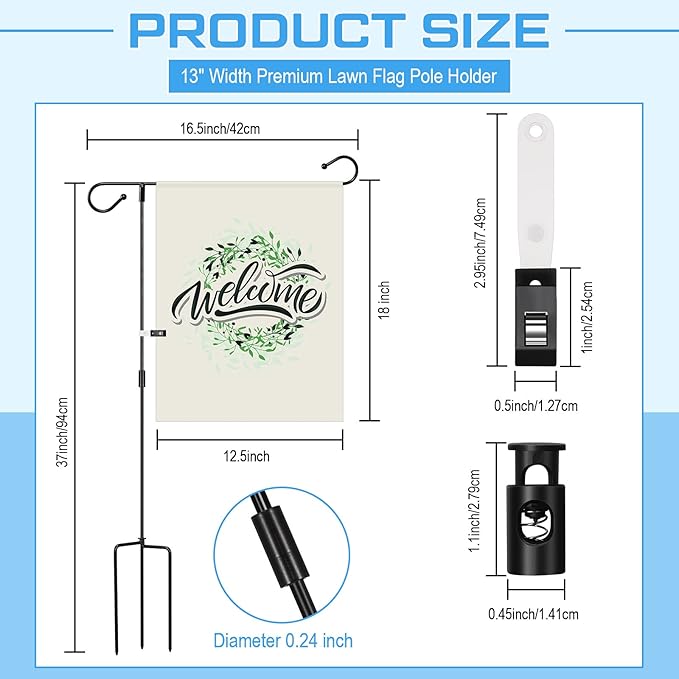 - Widely Applicable: these flag pole can meet the requirements of your big yard, garden, or your lawn or anywhere, add more fun to your garden, yard decoration, farmhouse or outdoor decoration; You can also give it to friends as a housewarming or holiday gift; Nothing says welcome like a garden flag on garden flag stand