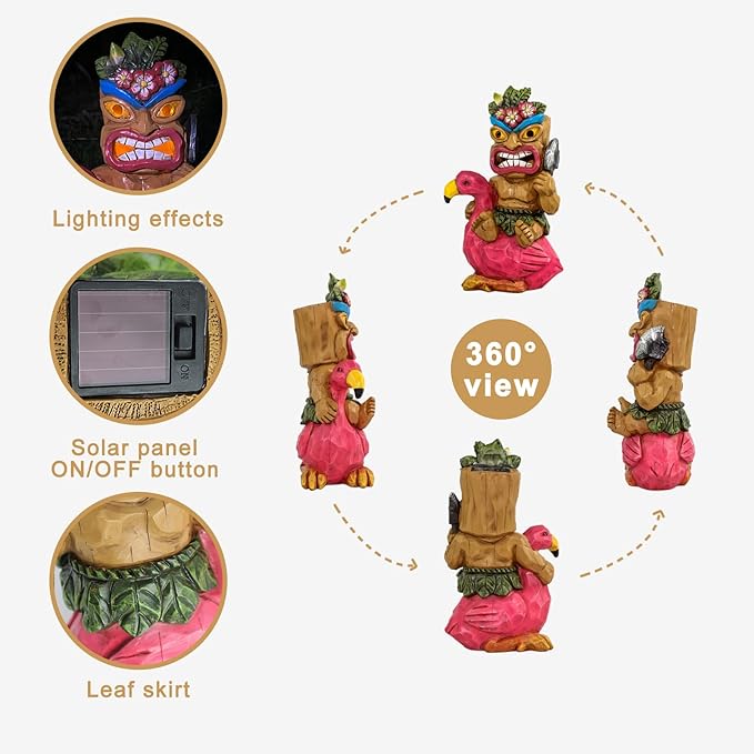 Solar Tiki Statue Flamingos Decor - Tiki Decorations Outdoor for Bar, Patio, Balcony, Yard,Lawn Ornament