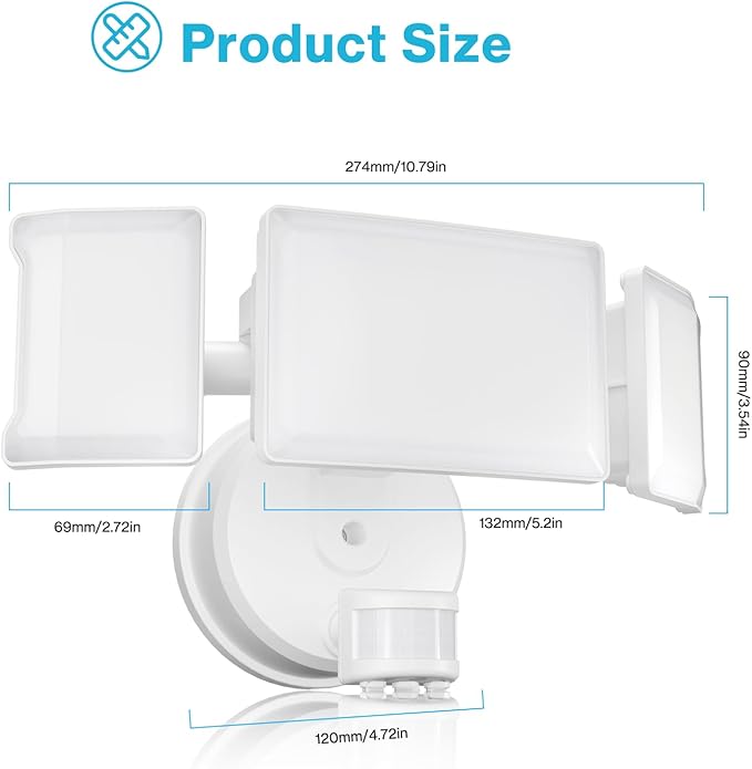 - Light Up the Wider Area: Triple-headed motion lights for outside illuminate up to 1150ft², reducing shadows and blind spots. With 270-degree adjustable coverage, these lights enhance home security and deter potential intruders