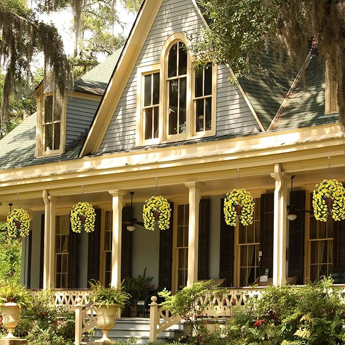 - ARTIFICIAL GREENERY DECORATION: The fake hanging flower in a basket looks real and stylish, making it the perfect hanging basket for your home, patio, balcony, garden, indoor and outdoor. It blooms all year and adds a sense of spring to your home