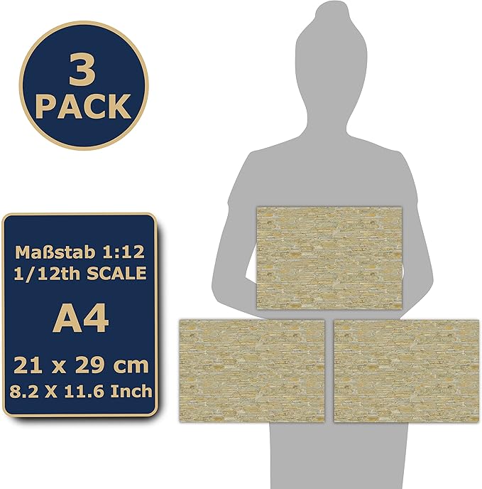 3 Sheets Self-Adhesive Wall Cladding for Dollhouse 1:12 Scale (Mediterranean Stone Wall)