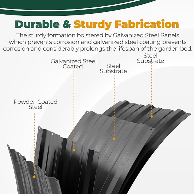 - LIGHTWEIGHT GALVANIZED STEEL- The outdoor raised garden beds are made from lightweight galvanized steel, ensuring exceptional longevity and durability. Also, it prevents it from corrosion and rust, offering a long-lasting gardening solution. Moreover, the middle support strip provided exceptional strength to our lightweight Galvanized Raised Garden Bed.