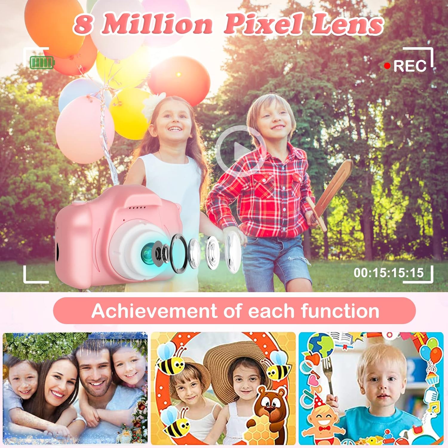 - 🎁【Best Gifts for 3-12 Year Old Girl】This kids camera for girls is extremely cute, small and light weight, Perfect size for little hands. Easy to carry and operate.This multi-functional kids camera comes with cute box which is perfect birthday, Thanksgiving day ,Children's day, holiday Gifts for Christmas aged 3~10.recording happy moments of the childhood of your children