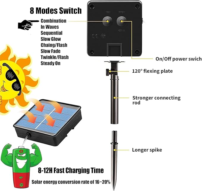 - 💡【Up to 19% High Energy Conversion Rate】Our solar rope lights are equipped with 100 low-heat LED chips, achieving a high energy conversion rate of up to 19%, compared to the industry standard of 13%. These lights are not only environmentally friendly, harnessing endless energy from the sun, but also durable and safe to use. The LEDs will not overheat even after hours of usage.