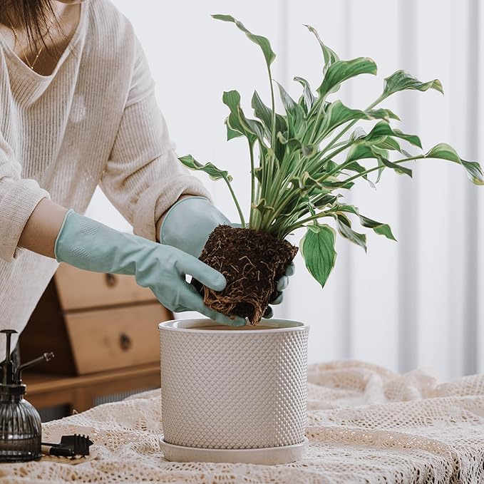 - Durable ceramic construction with 8" diameter and 7" height is ideal for small to medium houseplants or herbs