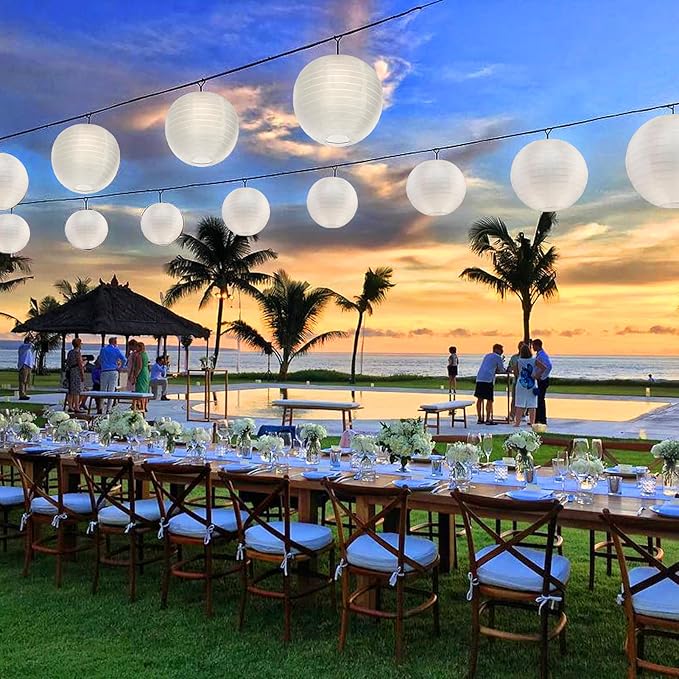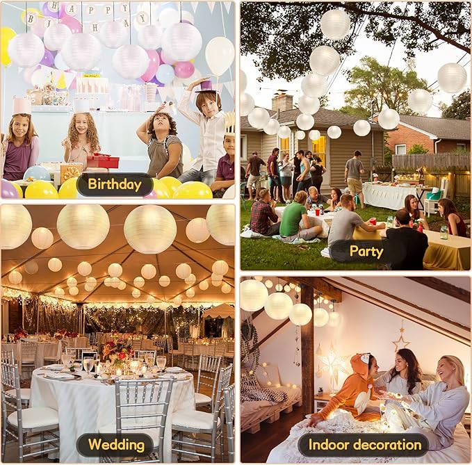 - Perfect Decoration for Any Event: Add decorative Hanging White Lanterns, your family and friends feel more joy and cheerful ambiance of the weddings, birthdays and other celebration. Also perfect for outdoor decoration, like courtyard, summer garden party and other white theme party.