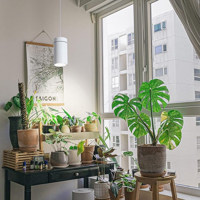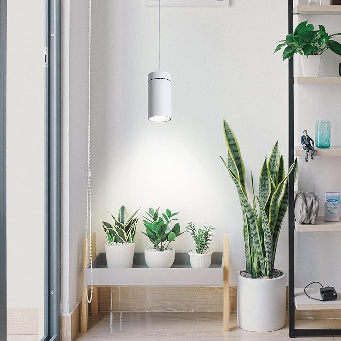 - Full Spectrum for All Stages of Plants : The hanging grow light for indoor plants with a full spectrum of 380-780nm (Included red/blue light spectrum), close to sunlight, perfect for all stages in plant growth, such as seeds, plants, flowering, and output. The white plug in plant lights for indoor plants is also more suitable for decorating your indoor, so that your plant garden area is filled with sunlight and closer to nature.