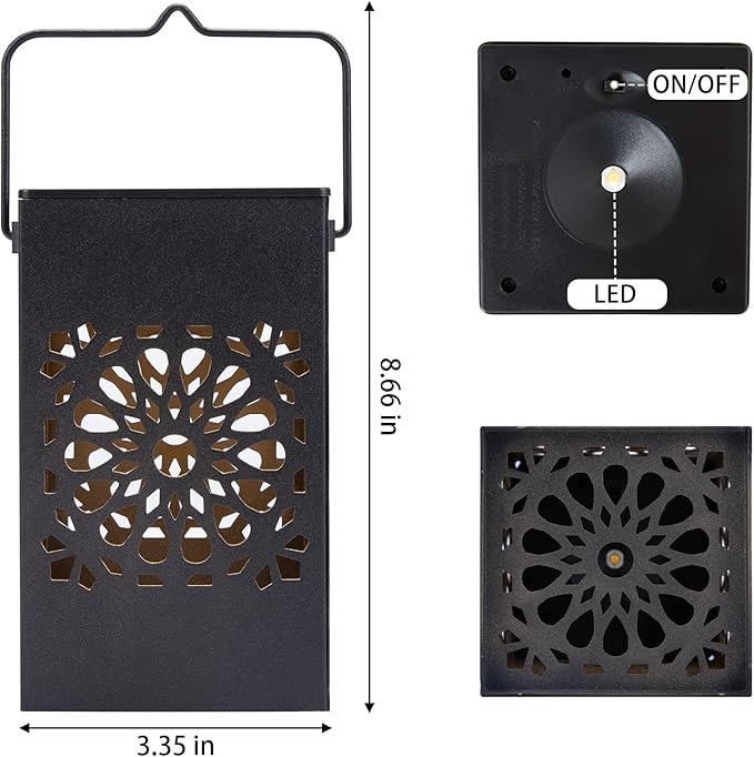 - 🌞Premium Quality & Auto On/ Off : The Outdoor light of solar lanterns is subtle and soft.Powered by solar, the lanterns automatically turn the lights on at dusk and off at dawn, saves energy.Be sure Turn ON button before charging.simply put them in the sunlight.(Solar panel must receive direct sunlight.)