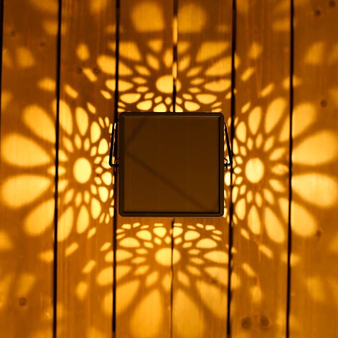 - 🌞Solar Garden Lights Outdoor Decorative: It can project lights like flowers at night. features rustic looking, gorgeous color, fabulous shadow pattern. A special solar lantern to decorate your outdoor.The decorative garden light sits on any surface and can be hung anywhere in your yard, patio .these are perfect mood lights for that outdoor peaceful place.