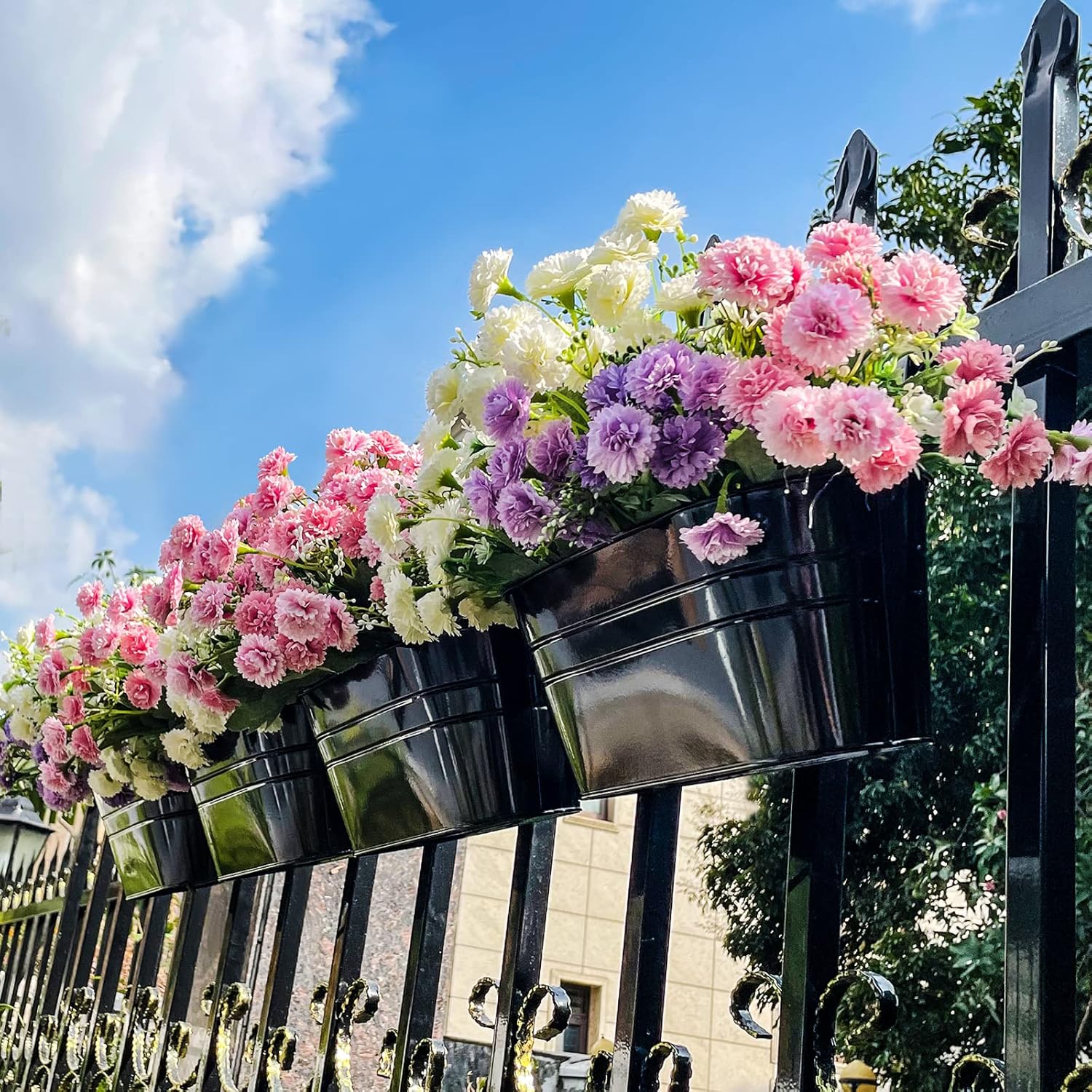 OGIMA 4pcs Hanging Flower Pots, Metal Iron Wall Planter Indoor/Outdoor for Railing Fence Balcony Garden Home Decoration with Detachable Hooks