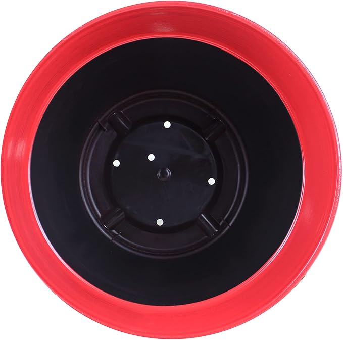 Garden Elements Indoor/Outdoor Glazed Brushed Happy Plastic Planter, Large, Bright Red, 15" (Pack of 2)