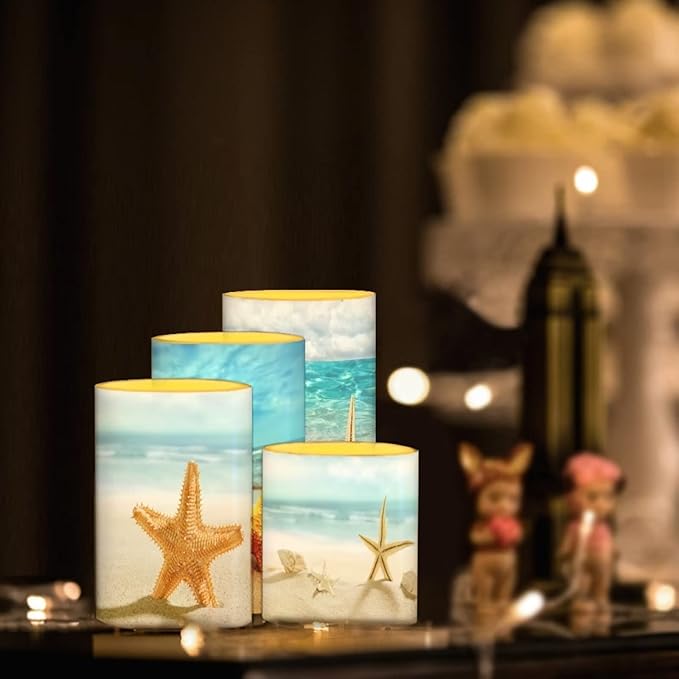 LED Flickering Candles Battery Operated Candles Set of 4 with Remote Control Timer Dancing Flame Pillar Candles Home Table Coastal Decoration, Beach Coastal