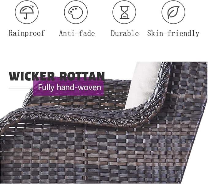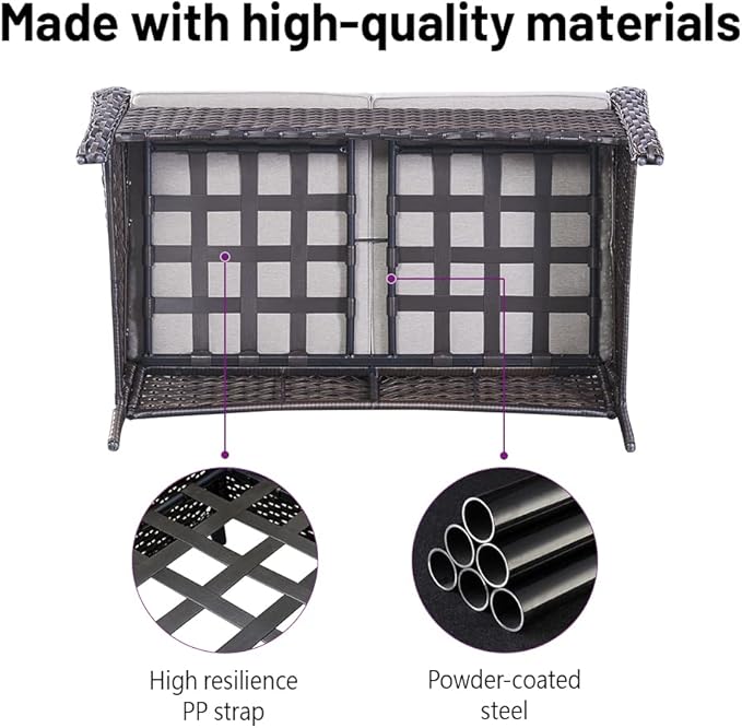 - Sturdy Wicker Furniture: Outdoor patio furniture sets are made of weather-resistant PE wicker that is extremely durable and resistant to water and fading. It has various ways to suit different spaces and make this wicker set great for your garden, patio, deck, poolside, porch, hallway, balcony and backyard.