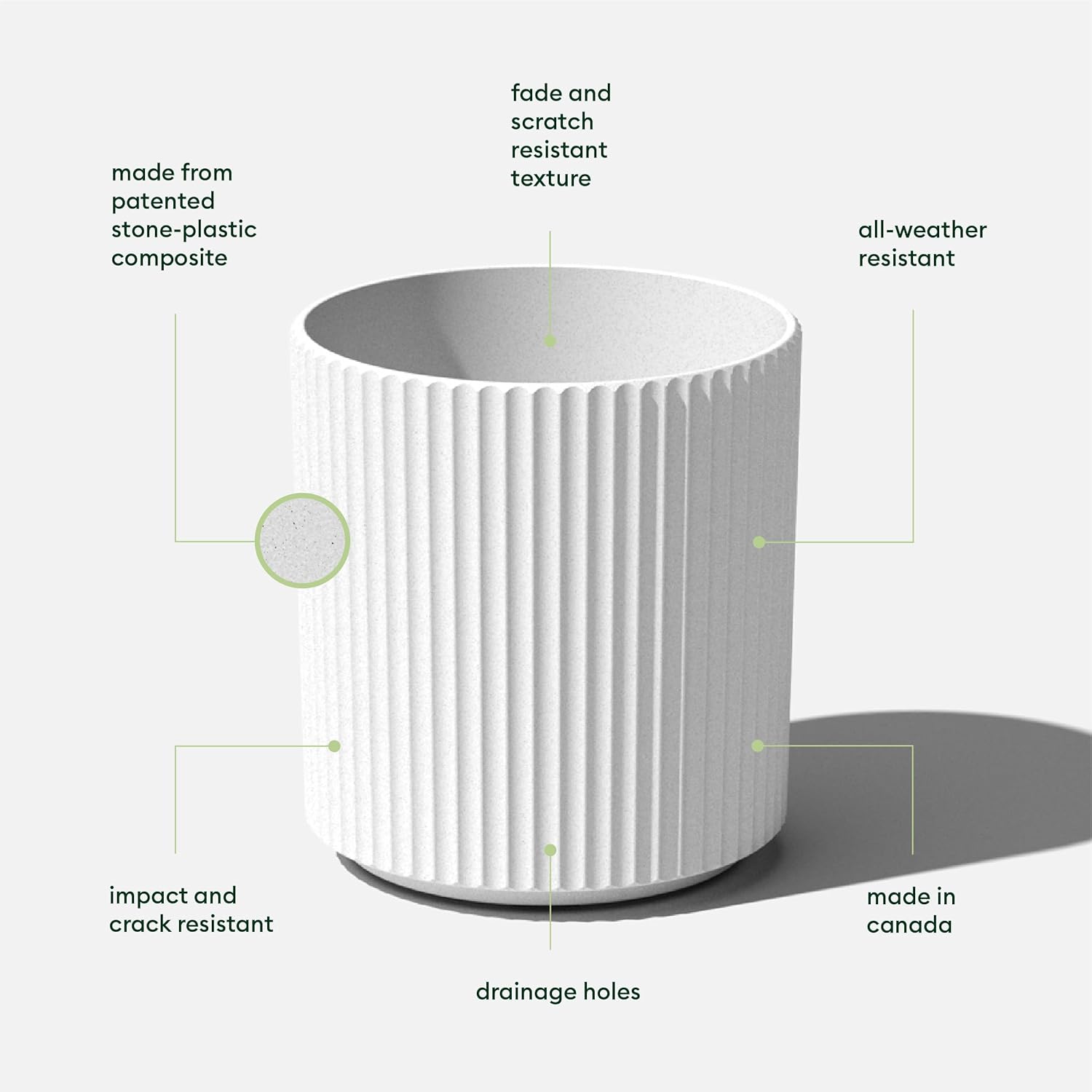 - Durable Construction: Made from a patented concrete-plastic composite that is weather resistant and fade resistant in extreme temperatures.