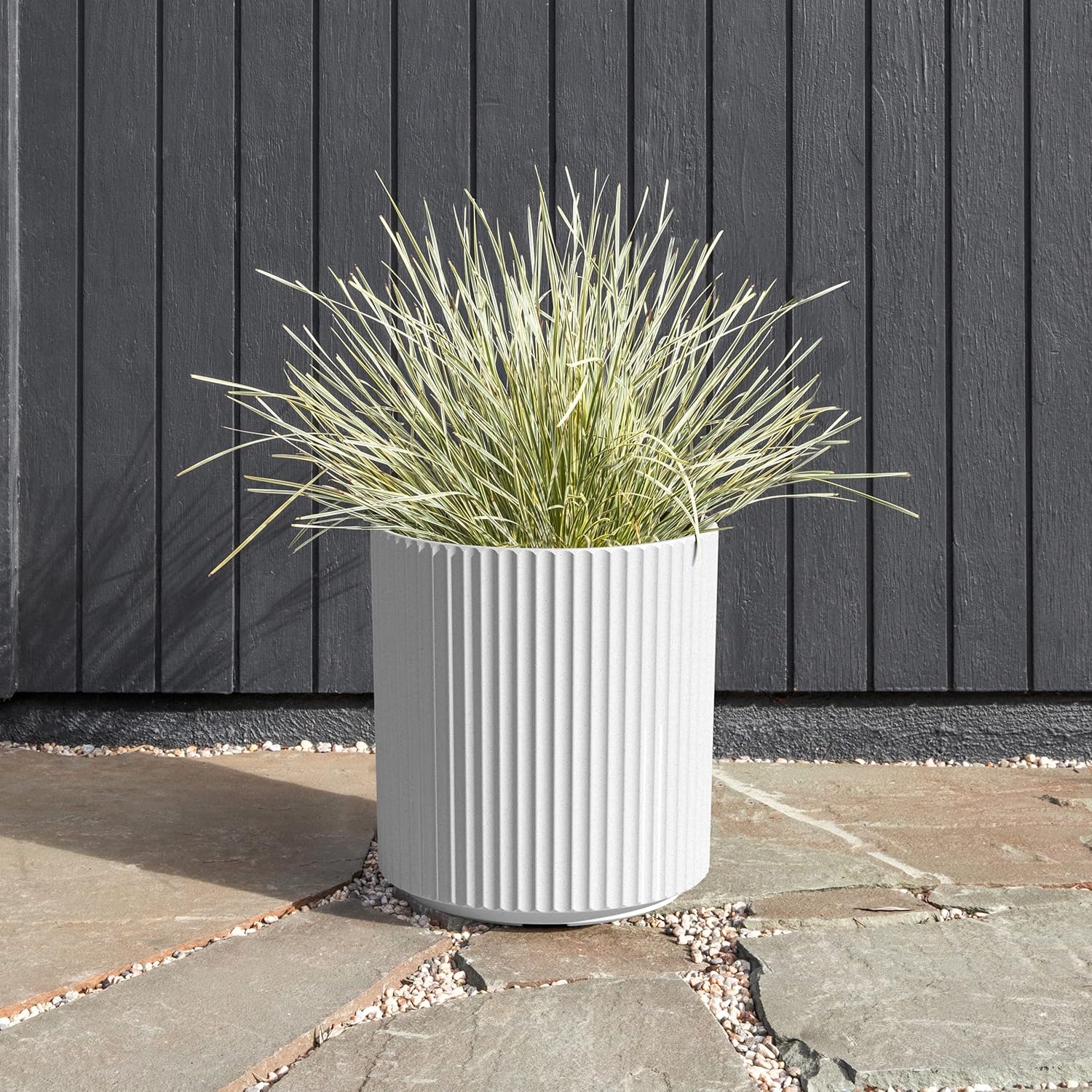 Veradek Demi Series Round Planter for Porch, Patio, Backyard | Durable Plastic-Concrete Material | Modern Décor for Tall Plants, Flowers