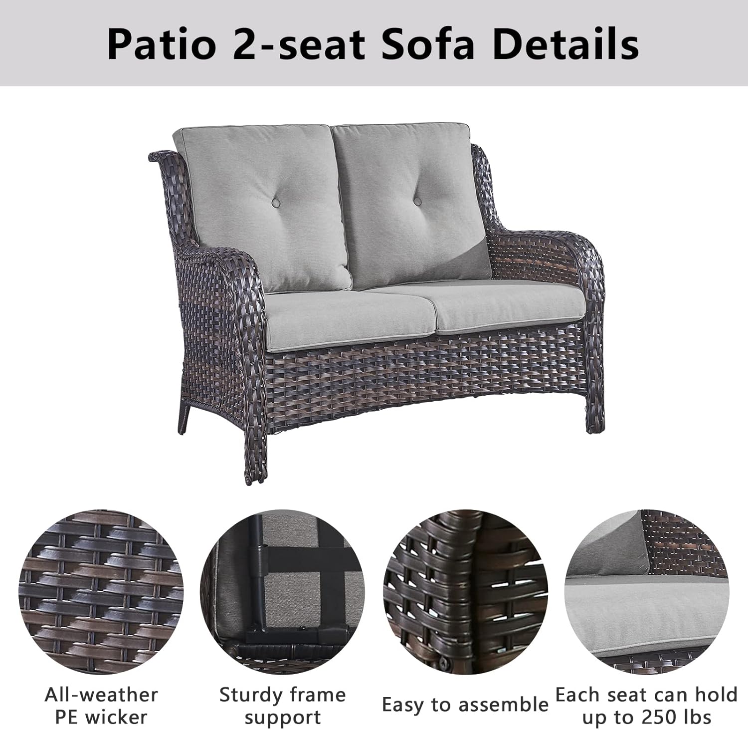 Outdoor Loveseat Small Patio Furniture 2 Seater Sofa Brown Wicker Couch Rattan Settee for Single-Family House