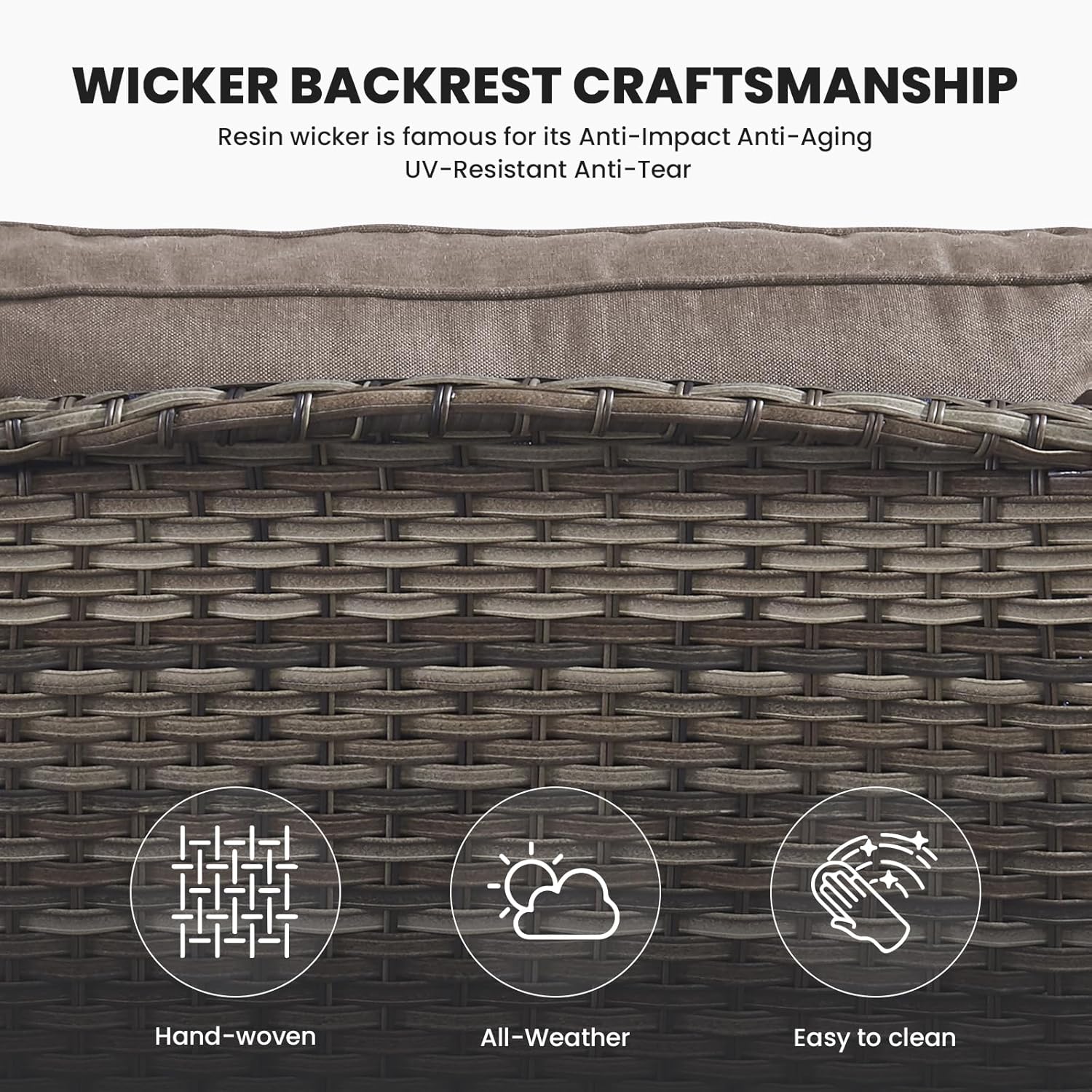- 3.Durable Material: This outdoor wicker sofa is made of hand-woven weather-resistant PE rattan and powder-coated steel frame, which makes the sofa couch stronger and more durable. The wicker sofa can hold up to 900 pounds of weight capacity.