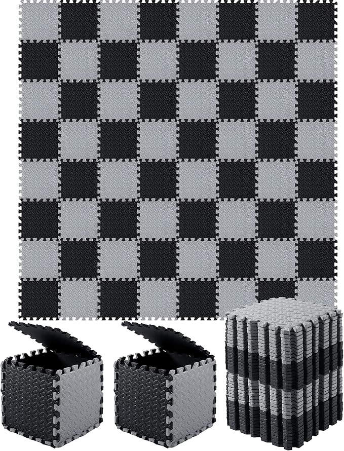 Shihanee Foam Floor Baby Tiles Foam Floor Mats Play Mats Bulk with Borders Interlocking for Kids Baby Playroom Nursery Gym (Black, Gray,64ft)