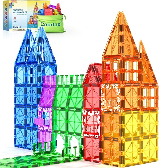 - 【 STEM Montessori & Sensory Toys 】 Coodoo magnetic tiles come in a variety of colors and shapes, making them a fun and engaging STEM toy for kids. Building with magnetic tiles not only helps with hand-eye coordination but also enhances cognitive and sensory development, allowing kids to unleash their inner architects and create unique structures.