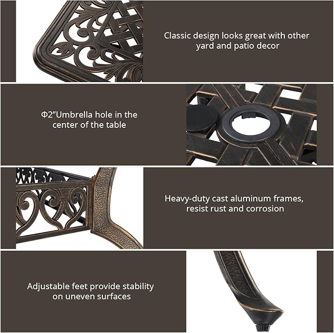 - Easy to Clean and Maintain: The cast aluminum material is easy to clean. Simply wipe it with a damp cloth to keep the table looking new. Its weather-resistant properties mean you don't have to worry about fading or rust, allowing you to enjoy the convenience and beauty of this table for years to come