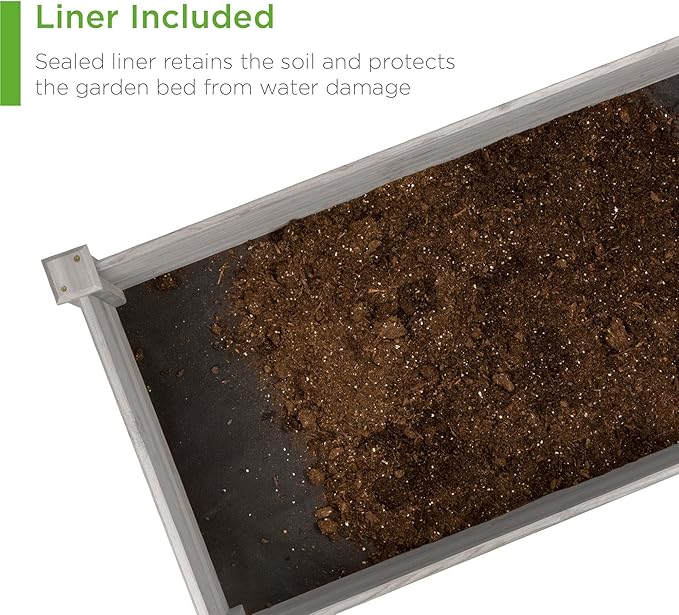 - MAXIMIZE SPACE: 8-foot garden bed provides ample space for plants to grow with an included liner to separate the wood from the soil and keep it in excellent condition