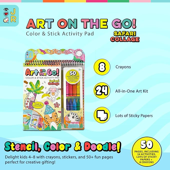 Bright Stripes Art on The Go Travel Kit for Kids Ages 3+| Collage Fun Jungle Theme| Mess-Free Activity Set with Crayons, Stickers & Coloring Book| Creative On-The-Go Fun for Toddlers & Preschoolers