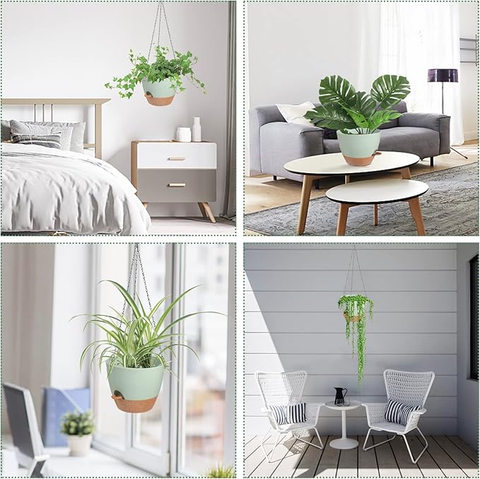 - Removable Trays - Hanging pots for plants indoor tray can be removed as a reservoir for self-watering, where excess water from the self-watering plant pots is drained into the tray, which stores a certain amount of water for the plants (7-14 days). You don't have to worry about your plants running out of water when you're away on a business trip or traveling.
