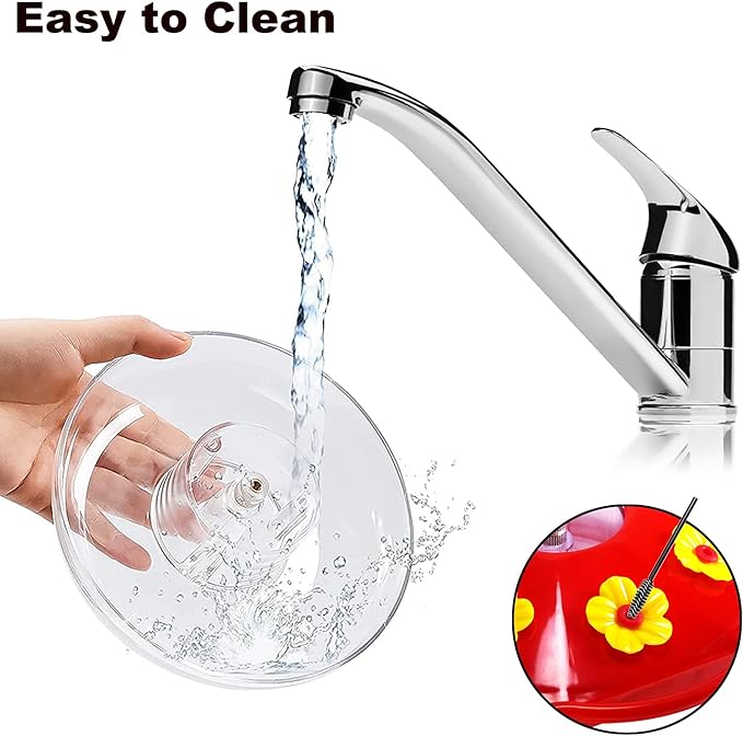 - πππππ£π₯π’π’π & π‘πππ§ππ₯ π£π₯π’π§ππππ’π‘ -- The feeder structure is simple, it does not need pressure difference to fill, so it is completely leak-proof, unlike other automatic filling products. Fill water in the center area near the rod, which can ensure the nectar you prepared for the hummingbirds is pure and free of any creepy crawlies.