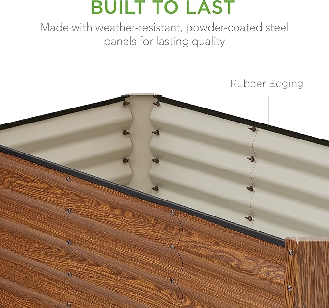 Best Choice Products 4x2x2ft Outdoor Metal Raised Garden Bed, Deep Root Planter Box for Vegetables, Flowers, Herbs, and Succulents w/ 119 Gallon Capacity - Wood Grain