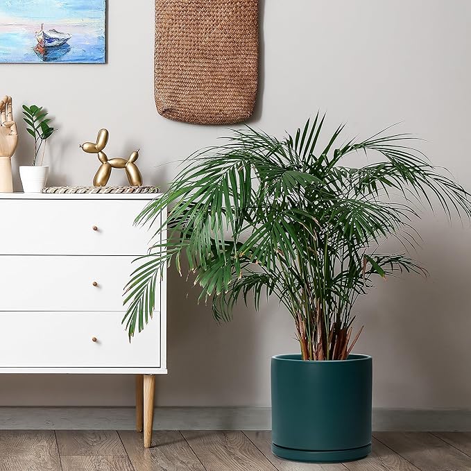 D'vine Dev Set of 2 Plants Pots, 10 Inch Ceramic Planter Pot for Plants with Drainage Hole and Saucer, Teal, 94-V-E-9