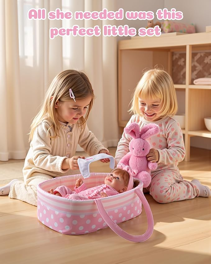 - Baby Doll Bassinet: The pink dot design reborn bassinet is easy to carry, durable, and has a large space, thickened design, foldable for storage, which can hold dolls and doll accessories, so that making it easy for kids to play everywhere
