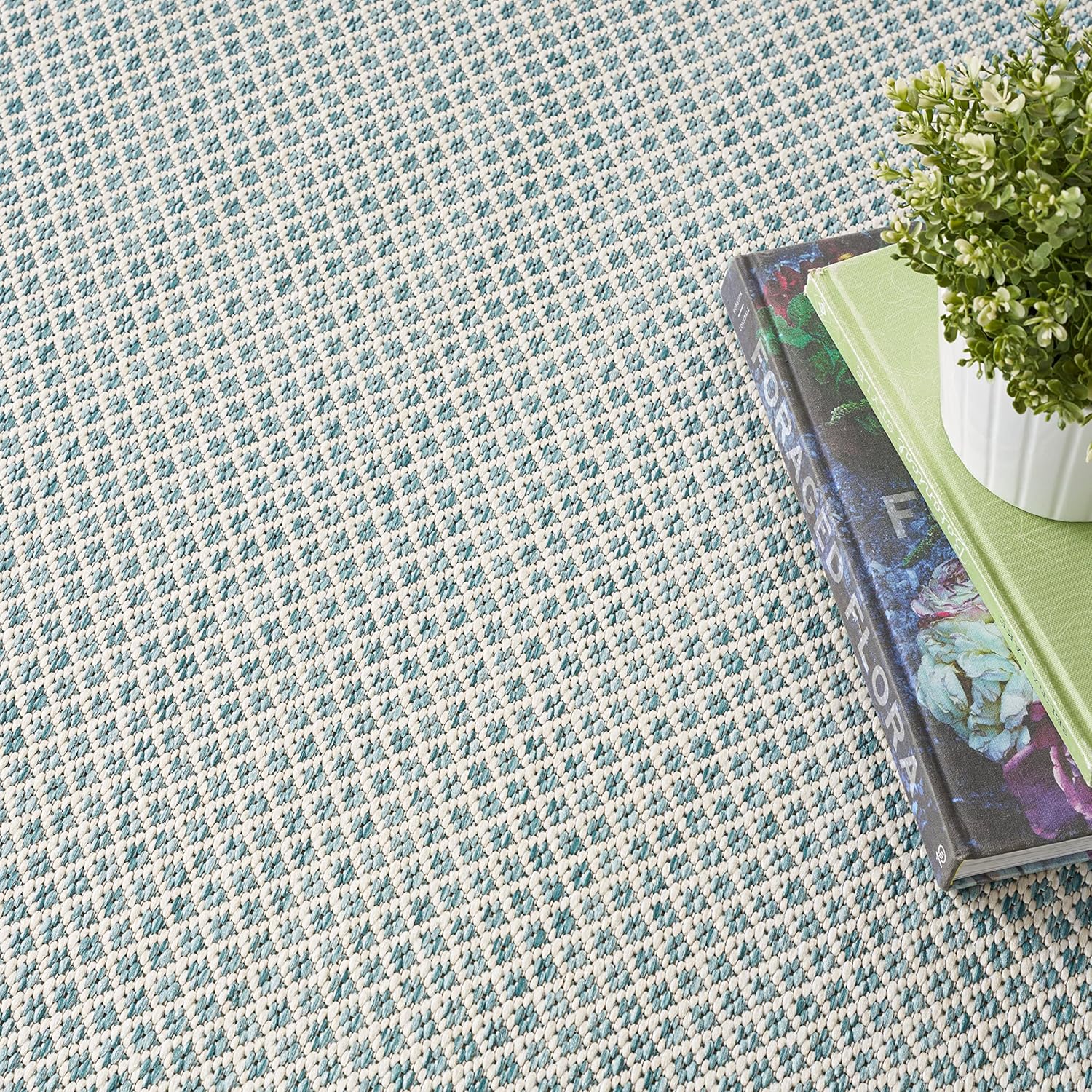 Nourison Home Courtyard Indoor/Outdoor Ivory/Aqua 5' x 8' Oval Area Rug, Easy Cleaning, Non Shedding, Bed Room, Living Room, Dining Room, Backyard, Deck, Patio (5x8 Oval)