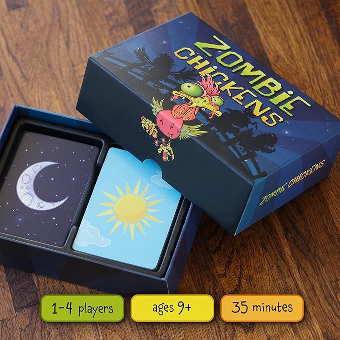 - GREAT FOR FAMILIES & FRIENDS OF ALL AGES - Zombie Chickens is the perfect card game for family game night, hanging out with friends, or playing solo in a round of zombie-fighting solitaire! 1-4 players, ages 9+, gameplay lasts around 35 minutes.