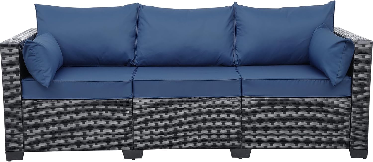 Rattaner Outdoor Furniture Outdoor Couch Patio Furniture 3-seat Sofa Deep Seat Hight Backrest with Waterproof Cover and Anti-Slip Cushions, Navy Blue