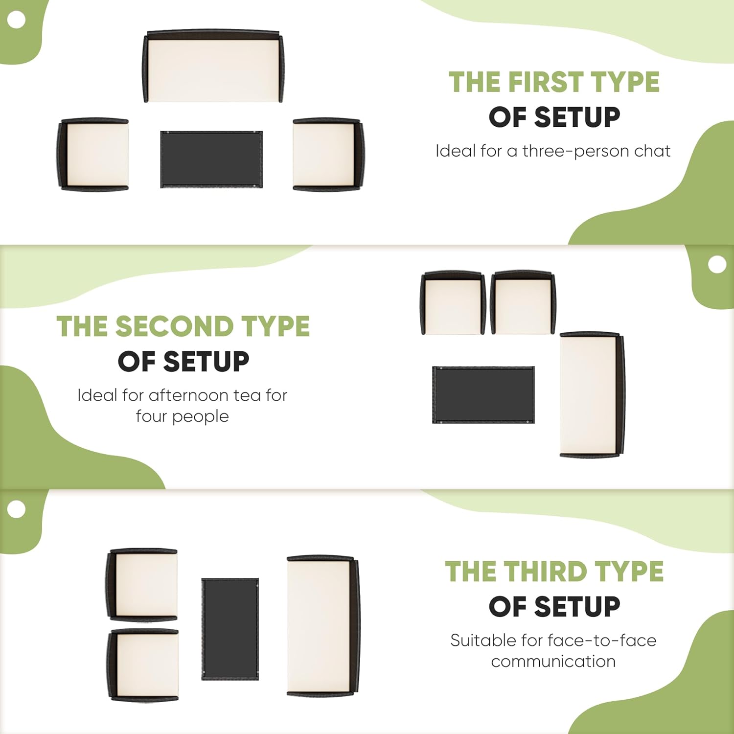 - Widely Used: Because of its combination design, it is composed two single seat, a loveseat and a glass coffee table, these components make the set can be used in many occasions such poolside, backyard or garden.