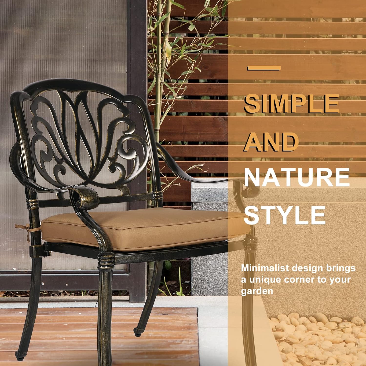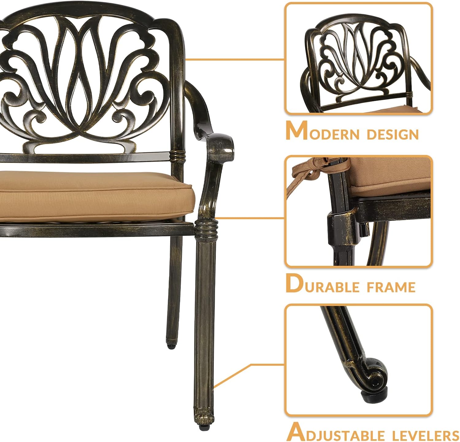 - 【Durable 3-Piece Dining Set】 - Made from cast aluminum for long-term durability. Resistant to rust, weather, fade, crack. This patio set includes 1 round table, 2 chairs, 2 cushions, and they stay in perfect condition regardless of the weather. It's also easier than ever to clean, just use a dry or damp rag to wipe down.