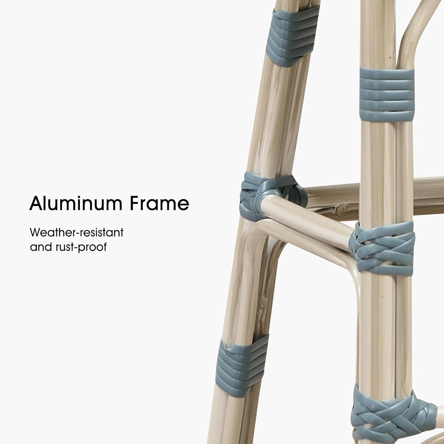 - 【White Distressed Finish】It's made of powder-coated aluminum that's weather-resistant and rust-resistant. Then a white distressed finish is hand applied to make these aluminum bar chairs look vintage.