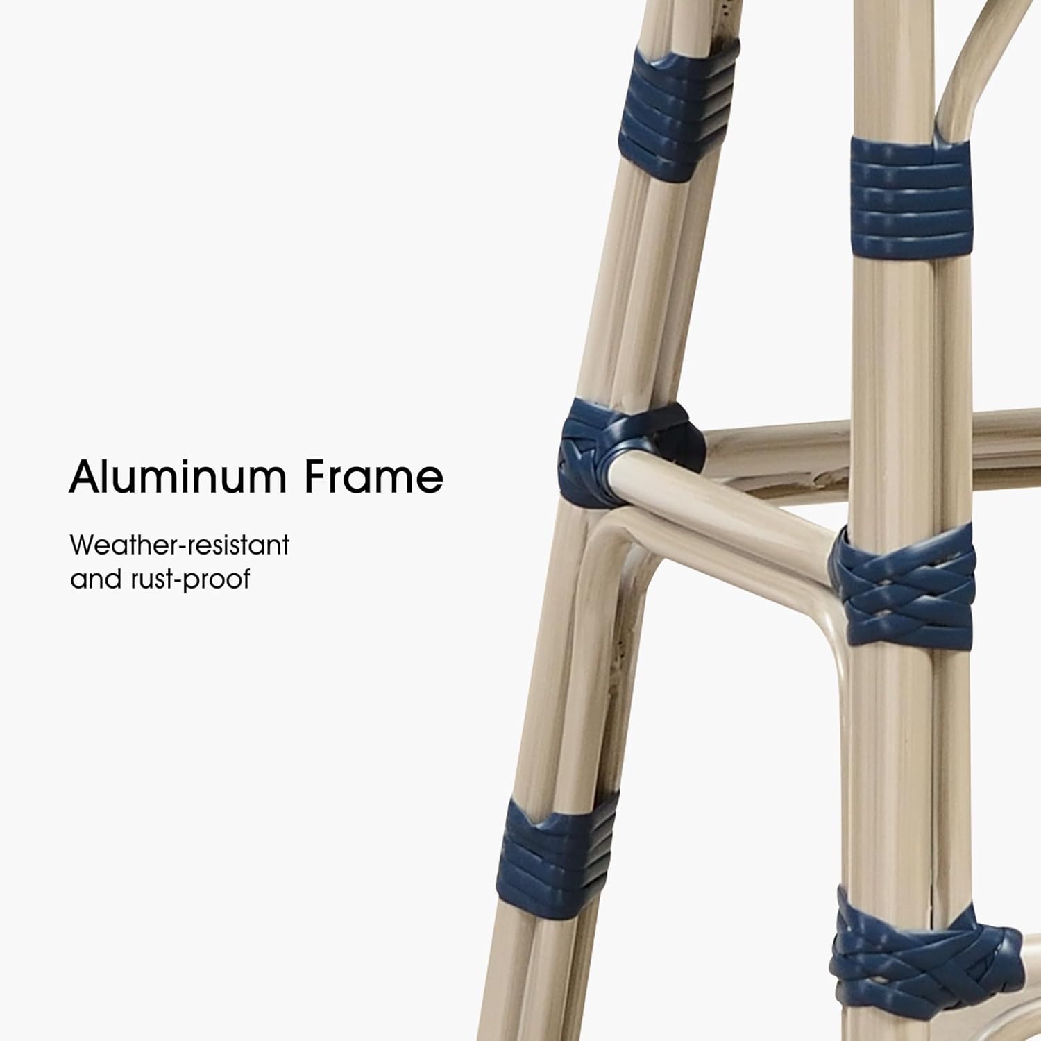- 【White Distressed Finish】It's made of powder-coated aluminum that's weather-resistant and rust-resistant. Then a white distressed finish is hand applied to make these aluminum bar chairs look vintage.