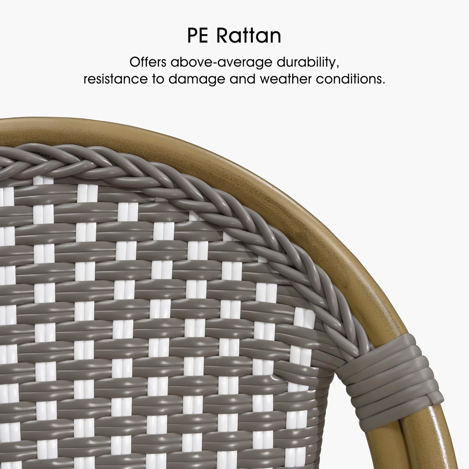 PURPLE LEAF French Counter Height Bar Stool Set of 4 25" Bamboo Print Finish Patio Bar Chairs with Back Rattan Bar Chairs French Bistro Set for Kitchen Outdoor Counter Stool Grey